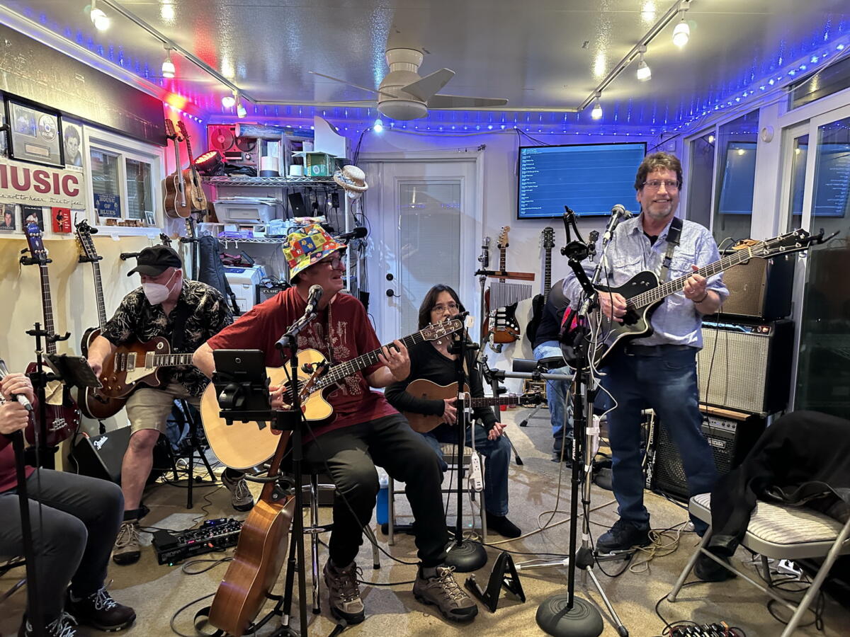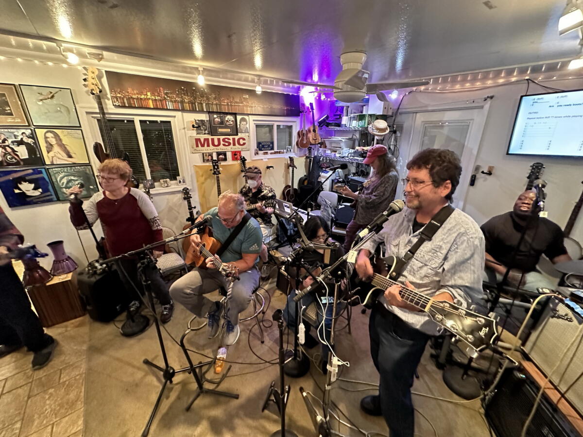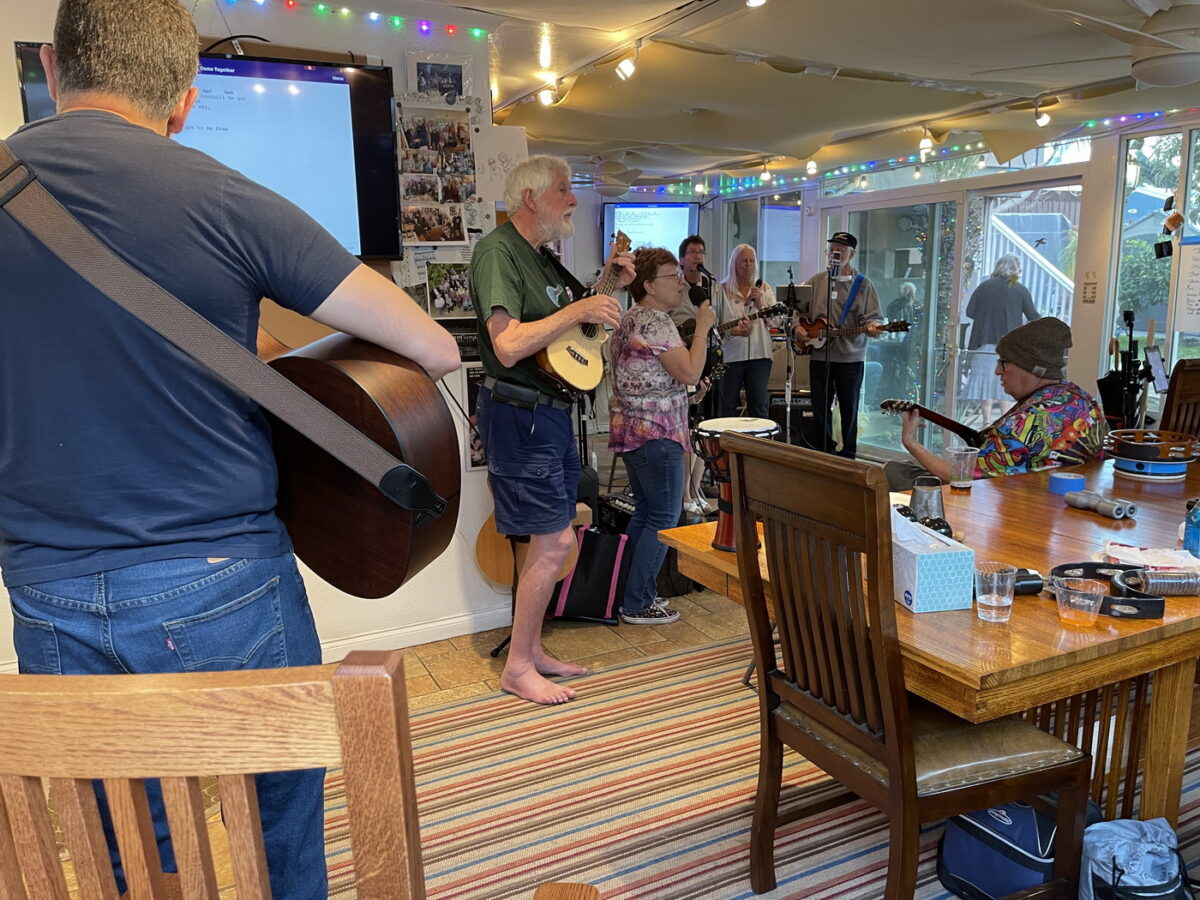 Music Night Photos of the Group Welcome to Music Night in the kingdom. We get together about 10 times a year to party and play. Lots of fun. The photos prove it.
